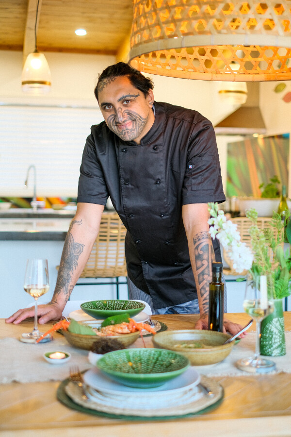 Back at the Kina Cottage, Chef Kia — known for his inventive seafood dishes and his ability to marry traditional Māori flavours with contemporary techniques — will serve your catch of the day in a private ocean-to-table dining experience. Expect a bespoke multi-course menu that includes kina mousse with caviar and rēwana bread, followed by handmade spaghetti with kina butter and pink pepper, served with crayfish and kawakawa, and finishing with a dessert true to Chef Kia’s signature style: fry bread, pōhutukawa, and smoked chocolate with coconut gelato.