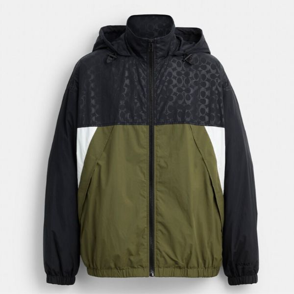 This water-resistant nylon windbreaker from Coach features its signature tonal detail on the yoke, giving it a subtle, classic vibe. The colourblock design offers a bold and modern energy that reflects the here and now.