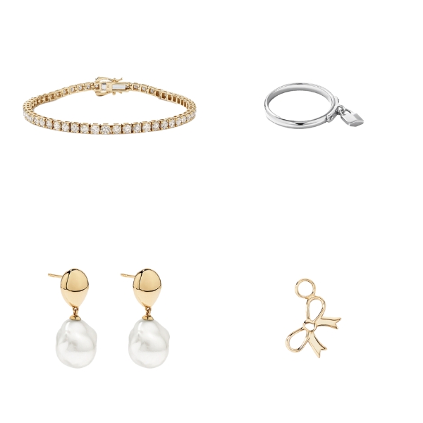 Suitable for stocking stuffers and extra special gifts alike, and with pieces crafted in 10-karat yellow gold, white gold and sterling silver, standout pieces include a 10-karat yellow gold ring dressed in a trio of shimmering pear- shaped lab-grown diamonds, Baroque cultured freshwater pearl drop dome earrings, a bold sterling silver link bracelet and the sweetest earring charms for those that love to customise.