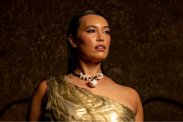 Moore embodies the complexity of not fitting the mould. ‘In Cutting the Curve, we touch on how my Samoanness doesn’t have a place in fashion,’ she says. ‘I’m considered a more ‘palatable’ version because I kind of fit Western beauty standards. That says a lot about how exclusion is still alive and well.’