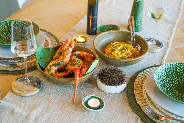 After dinner, guests can unwind at the private clifftop cottage, surrounded by a vineyard and olive grove, complete with sweeping ocean views, a deck made for enjoying kina fresh from the sea, and even a mermaid pool — home to a resident octopus.