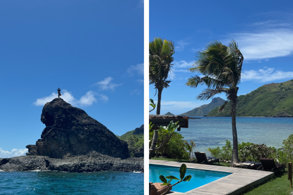 My next stop was Waya Island Resort, an adults-only beachfront retreat set against Waya Island’s dramatic basalt peaks. Upon arrival, I was greeted with a warm welcome home by the resort’s lovely staff, and with just 25 villas and bures nestled amongst lush tropical gardens, I felt an immediate sense of connection and community amongst the staff and guests. After a complimentary foot massage offered to all guests (what a win), I set about exploring the resort and the amazing experiences they offered. From snorkeling and paddleboarding, to a breathtaking morning hike up the famous Waya Island Peak—the view is worth it, I promise—there was no shortage of things to do and see. The restaurant food and beverage was also insane, with a menu made up of high-quality ingredients and award-winning wines sourced from Australia and New Zealand, dinners were simply icing on the cake after a very tiring day of swimming and sunbathing.